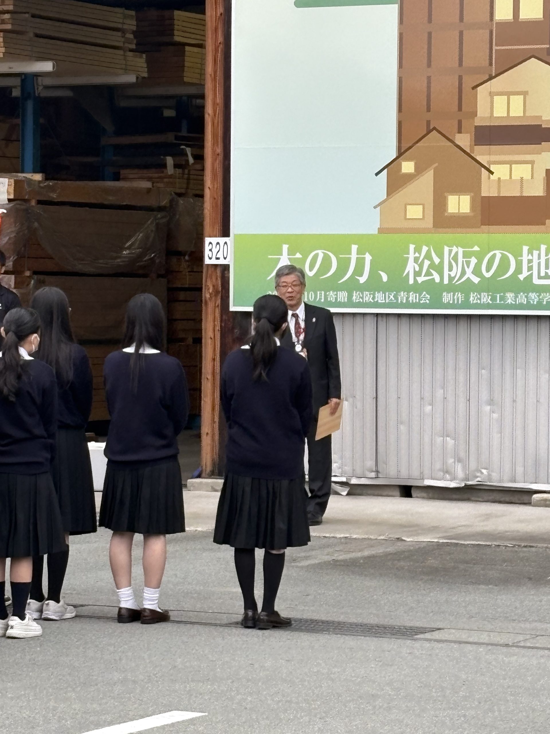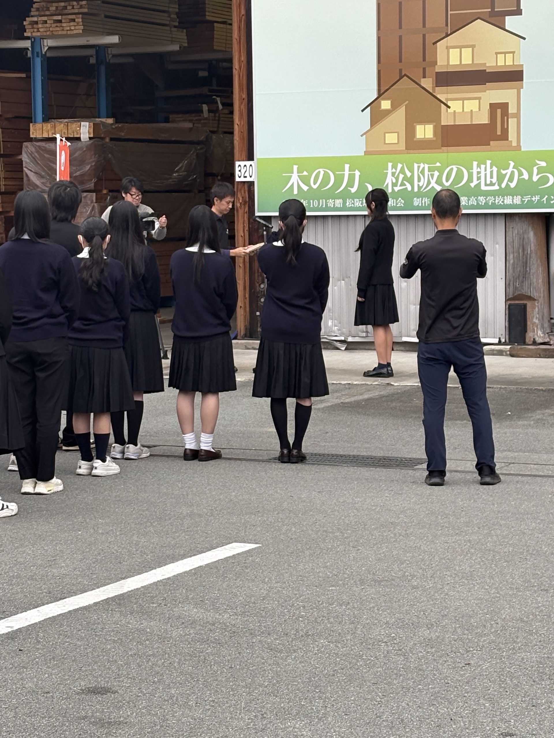 ウッドピア市売協同組合 理事長中川様のご挨拶   三重県立松阪工業高校繊維デザイン科の方の表彰