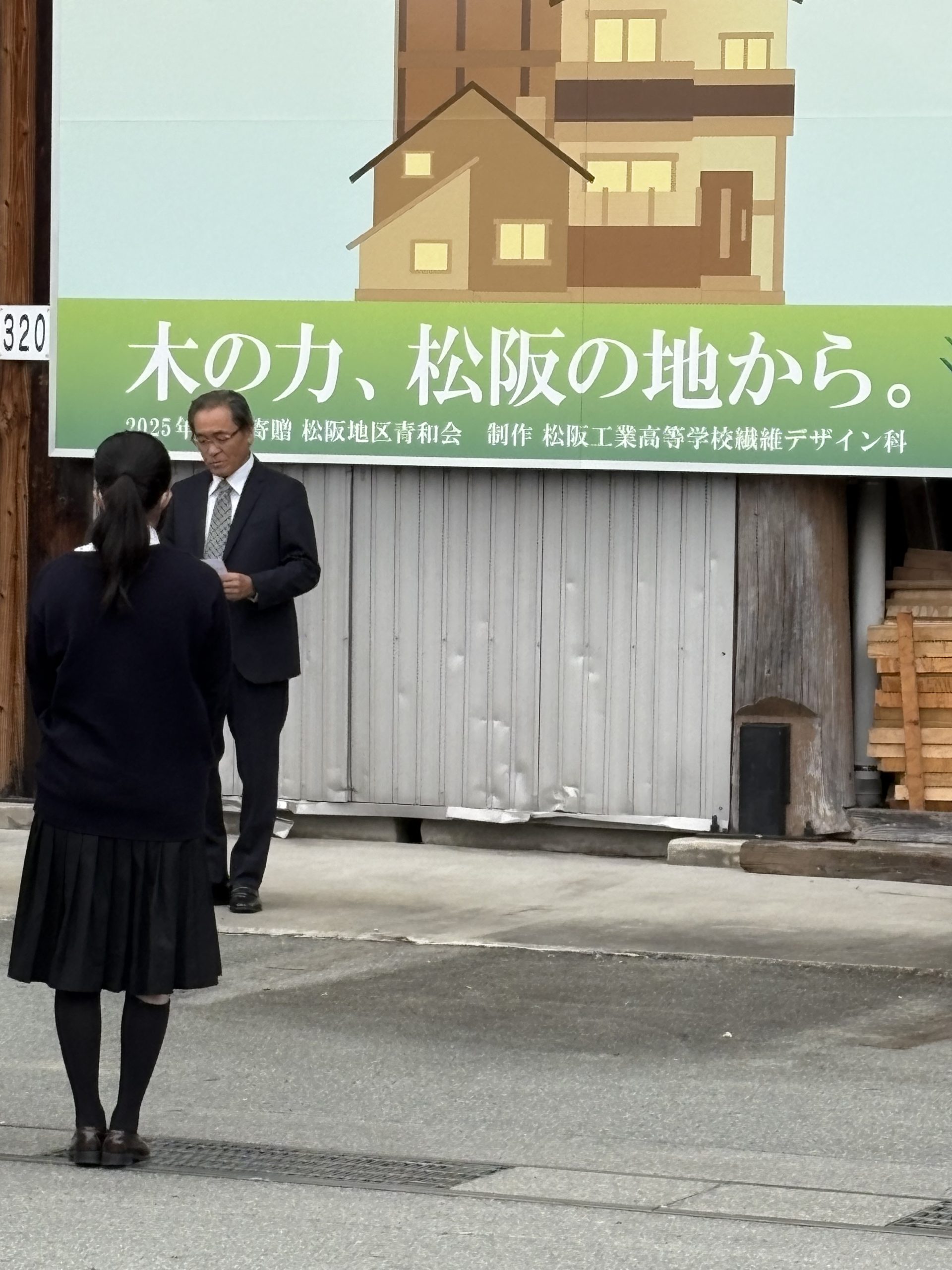 青和会 会長鈴木様のご挨拶             三重県立松阪工業高校繊維デザイン科の皆様です